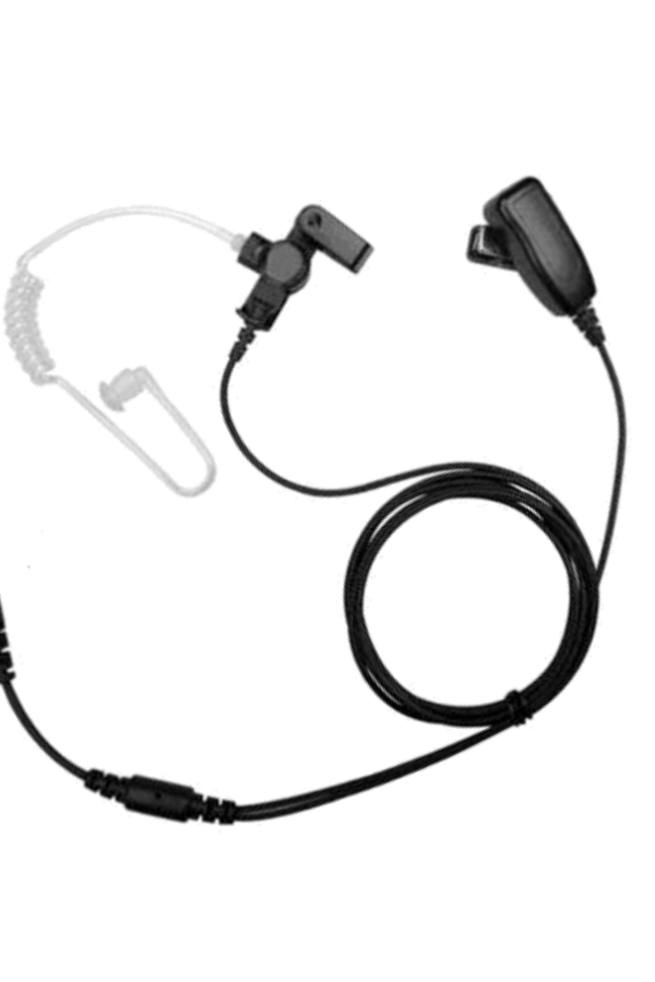 Deze bekende surveillance, security headset is voorzien van een kleine microfoon die aan de kraag geclipt kan worden en beschikt over een doorzichtig slangetje/airtube met wit dopje. Doordat het dopje in de gehoorgang wordt geplaatst, komt het geluid altijd direct binnen. Omstanders krijgen hiervan niets mee.