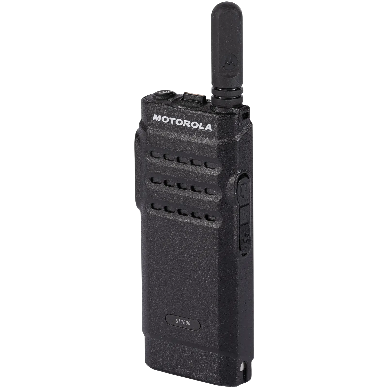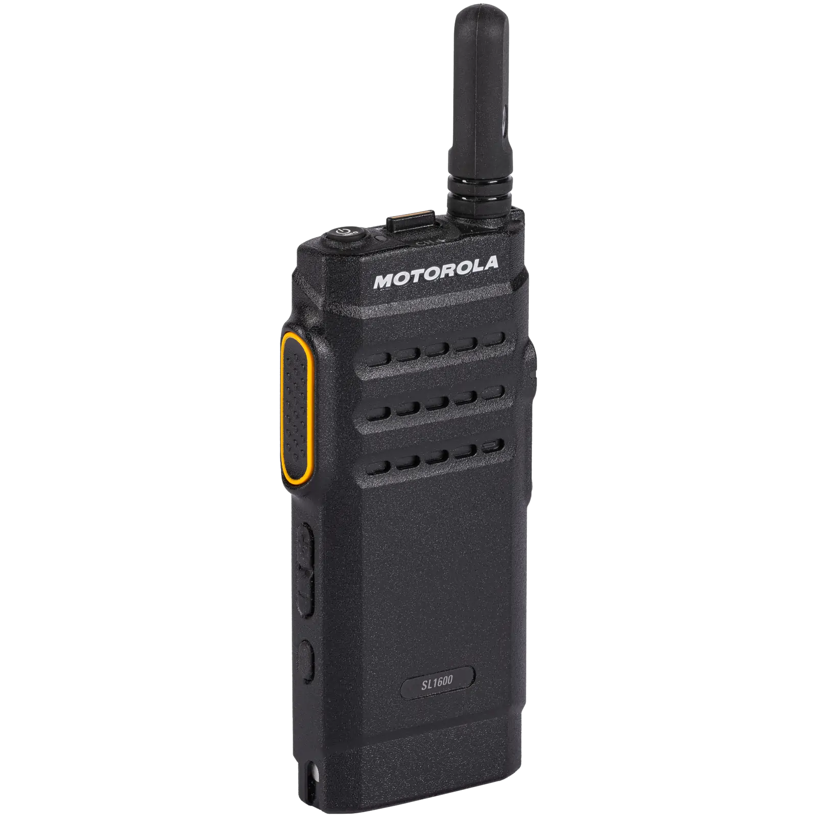 Wanneer de ultrakleine CLP446 of CLP446e van Motorola onvoldoende bereik biedt, maar de toepassing toch vraagt om een representatieve portofoon, dan is de licentieplichtige SL1600 van Motorola ongetwijfeld een goede oplossing. Met zijn dikte van slechts 22 mm en een zendvermogen van 3 Watt is deze portofoon toonbeeld van een staaltje perfectie. DeSL1600 is leverbaar in een VHF en UHF uitvoering en voor gebruik van deze portofoons is in principe een licentie van Agentschap Telecom vereist.